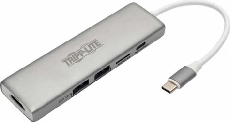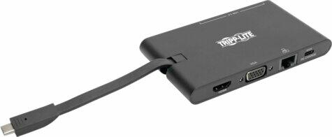 OverviewThis universal multifunction adapter lets you expand the connectivity of your laptop or MacBook through USB-C. You can connect your laptop to a VGA display, while also connecting a traditional USB 3.0 device. And, when coupled with your laptop’s power adapter, the multiport adapter delivers power to help charge and maintain your laptop’s battery. Rugged, travel-friendly designThis comp