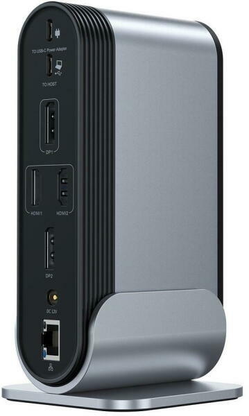 TermékleírásGyártó Baseus Modell CAHUB-HG0G Méretek 80 x 80 x 165 mm Súly 400g Modell CAHUB-HG0G Anyag Alumínium Szín Ezüst PD bemenet 100W DC bemenet 12V/3A 4K HDMI 2x támogatja a 4K @60Hz HD kijelzőt DP 2x támogatja a 4K @60Hz HD kijelzőt RJ45 gigabites hálózati sebesség, vezetékes hálózati kapcsolat USB 3.0 3x 5 Gbps átviteli sebesség, 5V/1.5A töltés támogatása SD/TF a