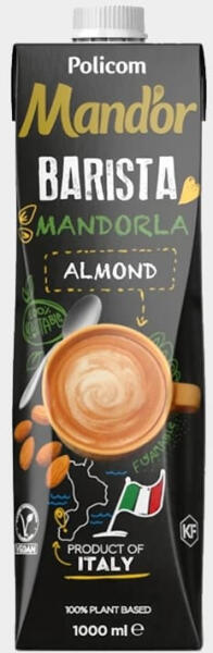 Habosítható növényi ital, ideális a kávézáshoz! Vegán, gluténmentes, alacsony cukortartalmú, laktózmentes, GMO mentes. A mandula Olaszországban termett. 1000 ml A Mand'or Barista egy professzionális felhasználásra is alkalmas mandula ital, amelyet növényi cappuccinók és egyéb laktózmentes termékek készítésére terveztek. Természetes és kiegyensúlyozott mandula ízű, t