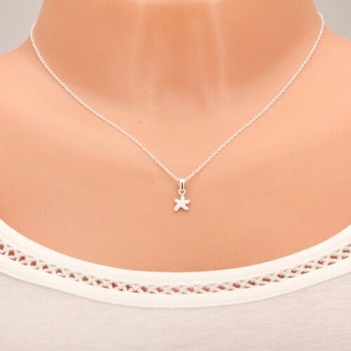 925 ezüst nyakék, amely ferdén összekapcsolt, elipszis alakú szemekből álló láncból áll, amelyen egy ötágú csillag függ, egyenetlen alakban. A csillag az elülső oldalról kivágott, apró golyókkal díszített. A medál hátsó oldala sima és fényes. A nyaklánc hossza állítható és delfinkapoccsal záródik. A medál méretei: 7 x 7 mmA medál súlya: 0,42 gA lánc széless