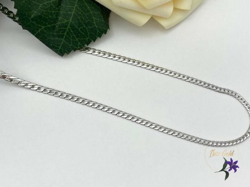Klasszikus és kedvelt fazonú, üreges kialakítású, ródiummal bevont, mutatós ezüstlánc.
