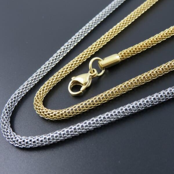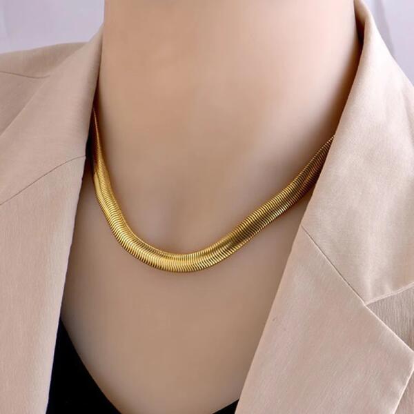 [block id=""premiium-nem-okoz-allergiat""] 45 cm hosszú 7 mm széles különleges ""kígyó"" szemzéssel nemesacél nyaklánc , arany fazonban anti allergén, nem kopik, magasfényű, tartós ékszer az idő múlásával nem veszít fényéből