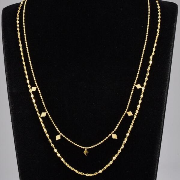 Abril Nyakék Szépséges, két sor nyakláncból álló Abril nyakék verhetetlen áron. Ez a nyakék Önt is biztosan elbűvöli. Szépen kiegészítheti vele öltözékét. Az ékszer nem tartalmaz nikkelt, ezért érzékeny bőrű emberek is viselhetik. Tulajdonságok: A nyakék hossza: 42cm + 4cm Anyaga: Nemesacél Szín: Arany