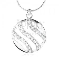 925 ezüst nyakék vékony láncból mérsékelten kidomorodó medállal. A medál kör alakú és három hullám díszíti beültetett cirkóniákkal és két fényes, sima félhold. A nyaklánc rugós gyűrű zárral rendelkezik. A medál átmérője: 16 mmLáncszélesség: 0,7 mmLánc hossza: 450 mm (+/- 5 %)A lánc súlya: 3,3 gFémjelzéssel ellátott.