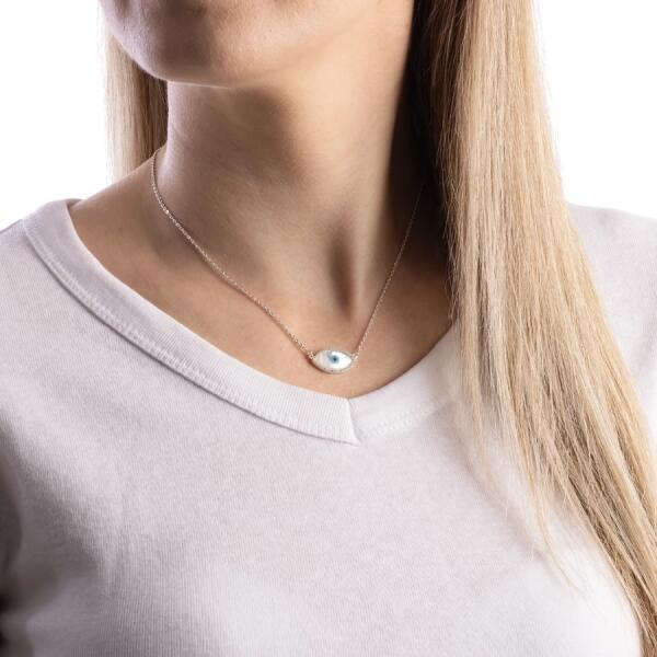Lab-grown zafírral díszített gyémánt nyaklánc, modell DIHU030N
