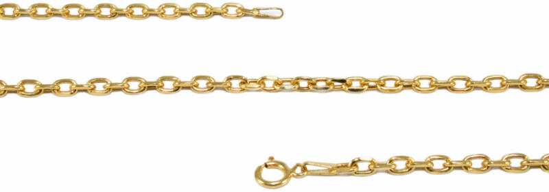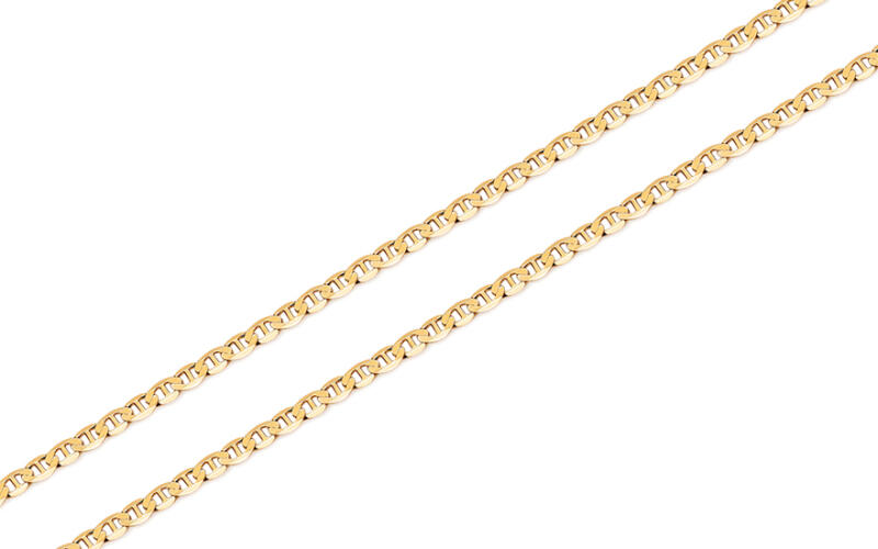 Klasszikus és kedvelt fazonú, anker szemkötésű, könnyített kialaklítású aranylánc.