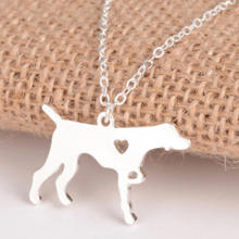 Fém hatású vizslás medál a tipikus vadász beállás közben, amelynek a közepén ki van vágva egy szív.