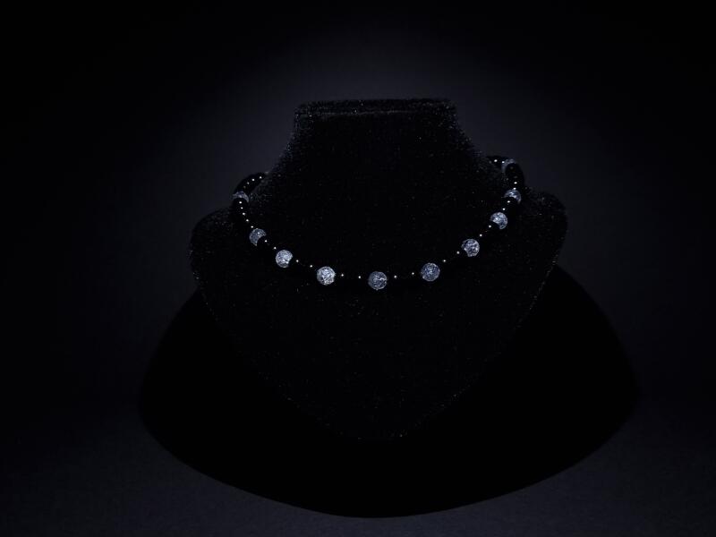 Kiváló minőségű valódi ónix, aura kvarc ásványból készült nyaklánc. Az ónix mély fekete árnyalatával és erőteljes megjelenésével stílusos kiegészítő, amely magabiztosságot és stabilitá st sugall viselőjének. A nyaklánc valódi ónix, aura kvarc 8-9 mm ásványból készült. Az ásvány, nyaklánc formában viselve nemcsak stílusos kiegészítő, hanem praktikus mó