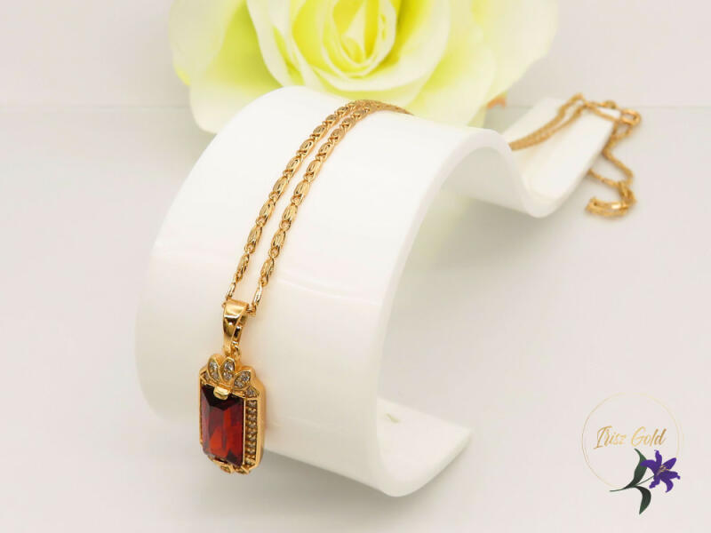 Goldfilled hosszúkás piros köves medál cirkóna köves foglalatban Szin: 18K Méret: 50cm / 3mm Medál: 26x10mm A forgalmazott divatékszerek alapanyaga nikkel és ólommentes ezért többnyire nem okoznak allergiás tüneteket, nyugodtan hordhatják fémérzékeny emberek is. Általában nem színezik a bőrt és más divatékszerekhez képest nagyságrendekkel jobb kopásállósággal rendel