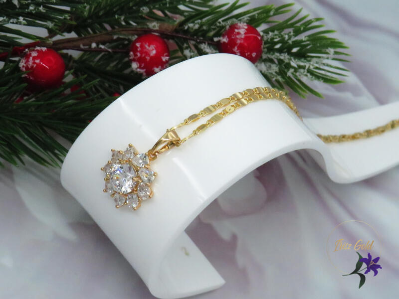 Gold Filled gyönyörű virág medálos cirkóna köves nyaklánc Szin: 18K Méret: 50cm Medál 15x20mm A forgalmazott divatékszerek alapanyaga nikkel és ólommentes ezért többnyire nem okoznak allergiás tüneteket, nyugodtan hordhatják fémérzékeny emberek is. Általában nem színezik a bőrt és más divatékszerekhez képest nagyságrendekkel jobb kopásállósággal rendelkeznek. A fe