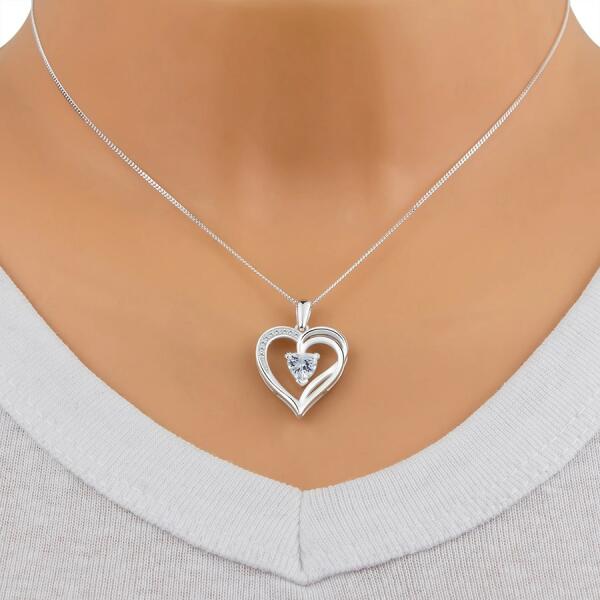 A medál méretei: 19 x 20 mmA medál súlya: 3,30 gLánc szélessége: 1 mmLánc hossza: 410 mmHosszabbító lánc: 30 mmTeljes hossz hosszabbítással: 440 mm (+/- 5%) Lánc súlya: 1,50 gFémjelzés – van. Ezt a 925 ezüst nyakláncot egy aszimmetrikus szív alakú medál díszíti, dupla vállrésszel. A medál egyik oldalát átlátszó cirkóniák díszítik, amelyek finom csillogást köl