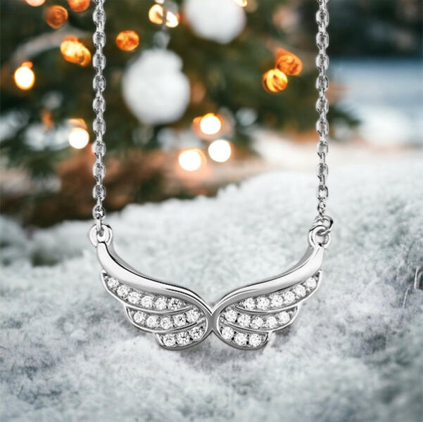 Az ezüst (925) nyaklánc - Angyal szárnyak cirkóniával egy exkluzív ékszer, mely eleganciájával és különleges designjával kiemelkedik a többi nyaklánc közül. Az ezüst (925) anyagának köszönhetően magas minőségben készült, amely megfelel a legmagasabb szabványoknak. Ezt a nyakláncot egyedivé teszi az angyal szárnyak formája, melyek a felszínen gyönyörűen kidolgozot