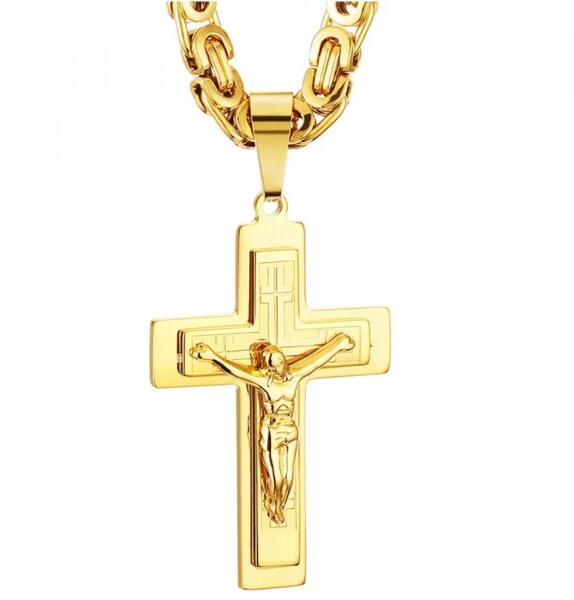 Religion Férfi Nyakék Ez az arany színű nyakék kereszt medállal nem csak csodaszép ékszer, hanem a hit erős szimbóluma is. A kereszt részletgazdagon kidolgozott, Jézus alakjával, így hangsúlyozza a spirituális jelentőségét. Ez a nyakék tökéletes társa lesz mindenkinek, akik hitüket nem csak szavakkal, hanem öltözködési stílusukkal is ki szeretnék fejezni. Ideális aj