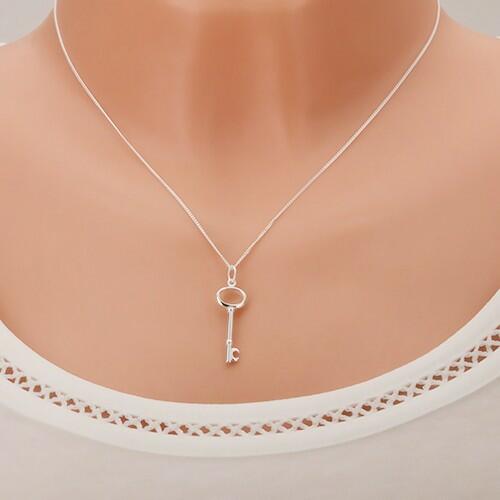 Nyakék 925 ezüstből csillogó aprószemű csavart láncból és ómódú kulcs alakú medálból. A kulcs fejecskéje kerek alakú négy golyóval a felszínén és négyszirmú virág kivágással. Delfinkapoccsal záródik. A medál méretei: 10 x 26 mmA medál súlya: 1,2 gA lánc szélessége: 1 mmA lánc hossza: 450 mm (+/- 5%) A lánc súlya: 1,4 gFémjelzéssel ellátott.