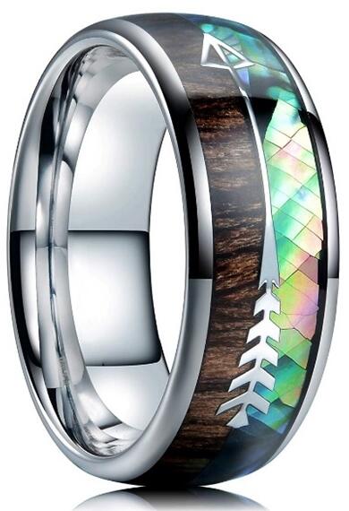 Arrow Gyűrű Bemutatjuk Önöknek ezt az exkluzív gyűrűt uraknak, ami a modern dizájnt kombinálja egy csipet eleganciával és erővel. Ez a gyűrű főleg azon urak számára ideális, akik szeretnék kifejezni egyediségüket és merészségüket. A gyűrű közepét látványos sáv díszíti, melyet természetes fa és textúrázott ezüst színű minta alkot, ezzel különleges hatást