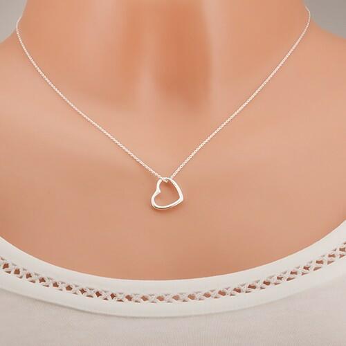 Nyakék 925 ezüstből apró egymásra merölegesen elhelyezett szemekből és medálból, mely sima szabályos szívkörvonal alakú. Delfinkapoccsal záródik. A medál méretei: 15 x 12 mm A medál súlya: 0,7 gA lánc szélessége: 1 mmA lánc hossza: 450 mm (+/- 5%) A lánc súlya: 1,3 g Fémjelzéssel ellátott.