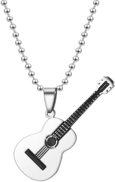 Gitarre nyakék Ez a stílusos nyakék gitár alakú medállal tökéletes kiegészítő a zenerajongók és az eredeti ékszerek szerelmesei számára. A gitár medál modern, de egyben klasszikus megjelenést kölcsönöz. A részletes kidolgozás hitelességet ad a medálnak és tökéletes szimbólumává válik zenei ízlésének. Robusztus lánc golyós dizájnnal biztosítja a kényelmes vi