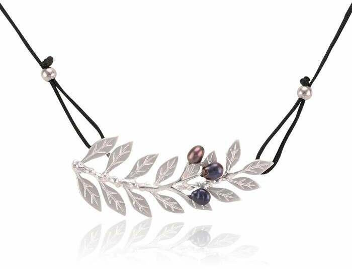 Részletek Ezüst női nyakklánc, olajfalevél medállal és fekete selyem zsinórral. Az ezüst nyaklán úgynevezett ródium bevonattal rendelkezik. A Ródium egy ezüstfehér színű rendkívül törékeny fém, amely nem színeződik el hosszú idő alatt sem. Előnyös tulajdonsága továbbá, hogy nem vált ki allergiás reakciókat, így gyakorlatilag bárki használhat ródiummal bevont