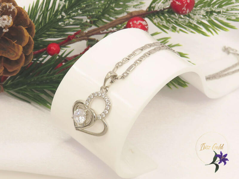 Antiallergén Szív alakú medál fehér cirkóna kővel , lapos váltott szemes nyaklánc jár hozzá Szin: rodium Méret: 50 cm / 3mm Medál:25x18mm A forgalmazott divatékszerek alapanyaga nikkel és ólommentes ezért többnyire nem okoznak allergiás tüneteket, nyugodtan hordhatják fémérzékeny emberek is. Általában nem színezik a bőrt és más divatékszerekhez képest nagyságrendek