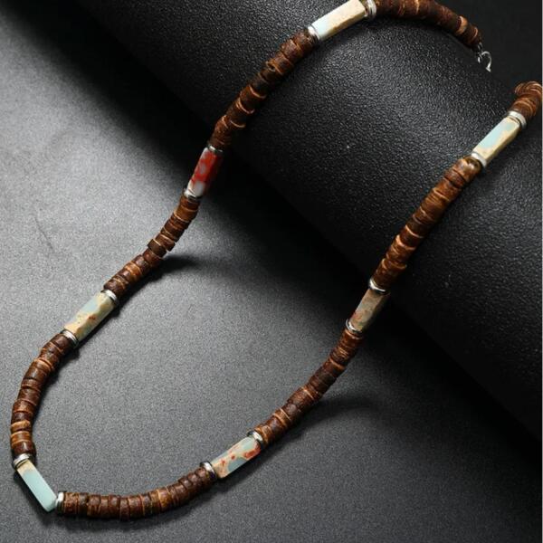 Abelardo Nyakék Ez a stílusos nyakék ideális kiegészítő olyan férfiak számára, akik a klasszikus és egyben modern dizájnt szeretik. A barna gyöngyök rusztikus megjelenést kölcsönöznek. Univerzális mivoltának köszönhetően ez a nyakék különböző öltözködési stílusokhoz illik – a laza szabadidős öltözetektől a formálisabb kombinációkig. Anyaga garantálja a ta