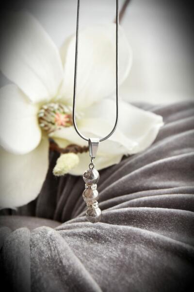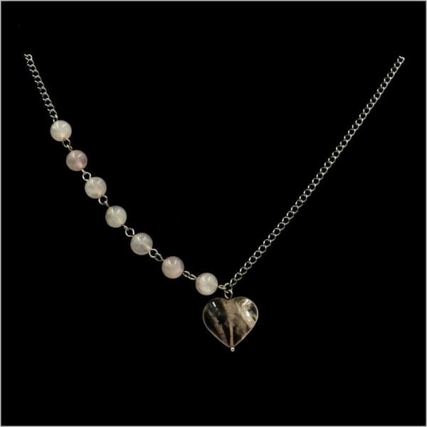 Orvosi acél nyaklánc rózsakvarc ásvány gyöngyökkel. A rózsakvarcok mérete: 8mm A lánc hossza állítható, maximum 70cm. A rózsakvarc gyógyhatása