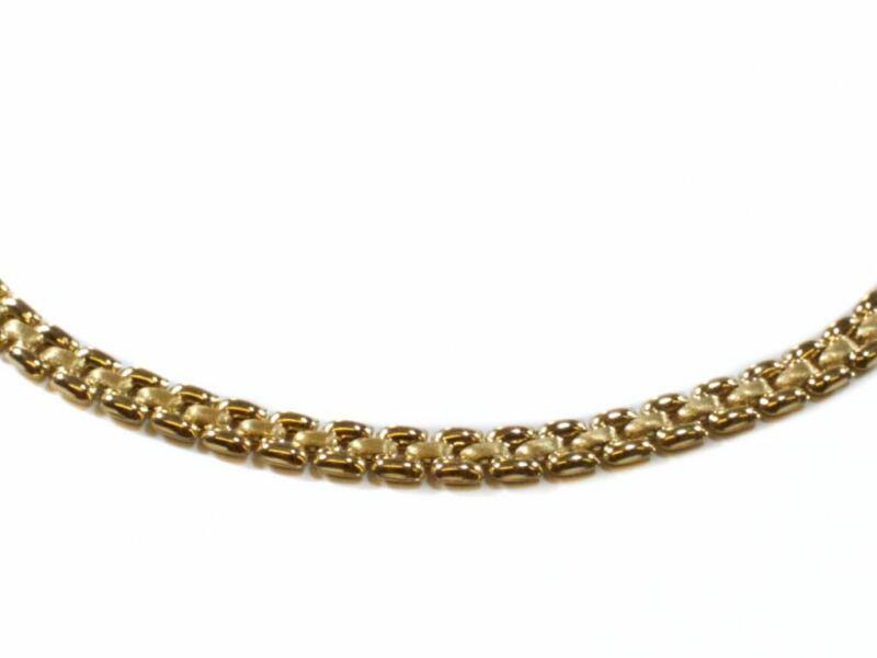 Klasszikus fazonú, mattítással ékített, hajtott szemekből álló, három soros sárga arany nyakék.