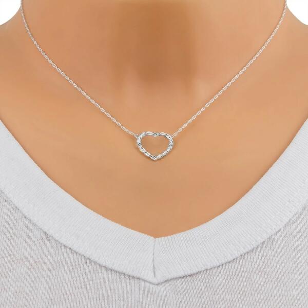 A medál méretei: 17 x 16 mmLánc szélesség: 1,1 mmLánc hossza: 410 mmHosszabbító lánc: 30 mmTeljes hossz hosszabbítással: 440 mm (+/- 5%)A nyaklánc súlya: 2,50 gFémjelzés – van. A 925 ezüst nyaklánc egy szív alakú, csavart vállú medállal. A medál négy átlátszó cirkóniával van díszítve, amelyek eleganciát és finom fényt adnak. A lánc sűrűn összekapcsolt ováli