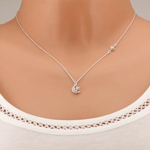 925 ezüst nyakék apró ovális szemű láncból, mely között egy kerek átlátszó kő van a foglalatba ültetve és karmokkal megfogva. A medál hold alakú és a teste közepéhez egy csillag van hozzáfogva. Apró kövek díszítik a medált. A nyakék delfinkapoccsal záródik. A medál méretei: 9 x 13 mm A nyakék súlya: 2,5 g A lánc szélessége: 1 mm A lánc hossza: 450 mm (+/- 5%) F