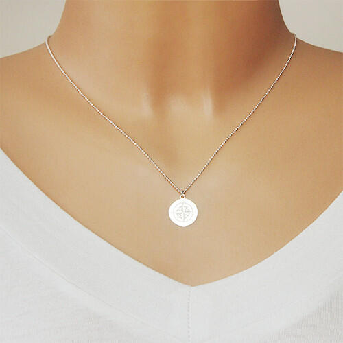 A 925 ezüst nyakláncot egy kerek fényes medál díszíti, amely egy iránytűből és az égtájakat szimbolizáló betűkből áll. A láncot fényes apró golyók alkotják. Nyaklánc rugós karika kapoccsal. A medál átmérője: 14 mmA lánc szélessége: 1,1 mmA nyaklánc hossza: 410 mm (+/- 5 %)A nyaklánc súlya: 2,94 gFémjelzéssel ellátva.