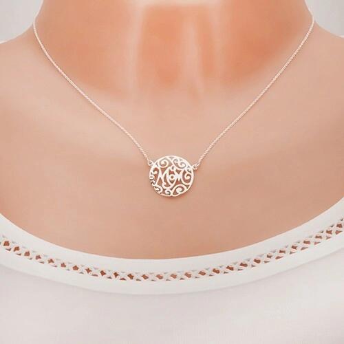 Nyakék 925 ezüstből ovális egymásra merőlegesen elhelyezett szemekből, melyek közepében egy kerek medál található. A kör fényes és kivágott csavart vonalak díszítik és "Mom" - "Anya" felirat van a közepén. Delfinkapoccsal záródik. A medál méretei: 19 x 20 mm A lánc szélessége: 1,1 mm A lánc hossza: 400 mmA hosszabbító lánc: 50 mmA nyakék súlya: 2,69 gFémjelzésse
