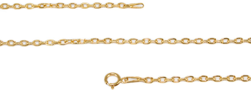 14K fehéraranyból készült lánc csillogó ovális láncszemekből áll, amelyek lapos formájúak, az illesztéseknél vésett bevágásokkal és apró bemélyedésekkel díszítettek. Rugós gyűrűzárral. A nyaklánc szélessége: 2,4 mmA nyaklánc hossza: 500 mm (+/- 5 %)A zárószem szélessége: 2,3 mmA nyaklánc súlya: 2,25 gFémjelzéssel ellátott. A ródiummal kezelt felület az ék