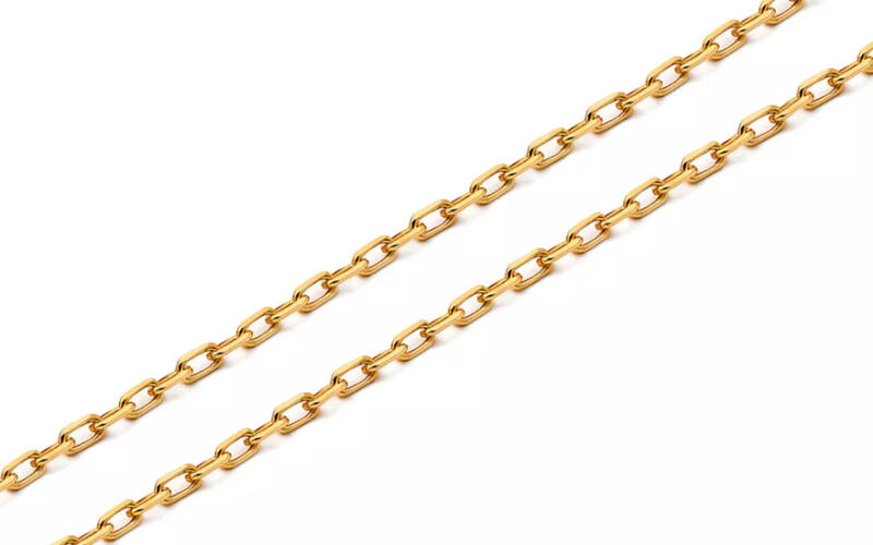 Klasszikus és kedvelt fazonú, üreges kialakítású aranylánc.