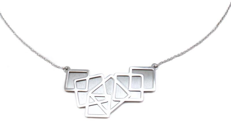 Modern stílusú, mattított kockákból álló, szétnyitható betéttel kombinált, "anker" típusú, ezüst nyakék.