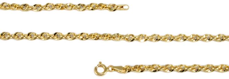 Klasszikus és kedvelt fazonú, üreges kialakítású, csavart, csillogó aranylánc.
