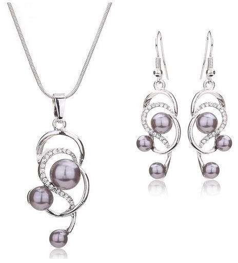 Ezüst színű nyaklánc, fülbevalóval. A medálon szürke szimulált gyöngyökkel, strasszokkal. Állítható hosszal. Esküvőre, mindennapokra, elegáns és alkalmi öltözethez. TULAJDONSÁGOKszürke színű gyöngy strasszokkal díszítve anyaga: szimulált gyöngy, strasszokMÉRETEKnyaklánc hossz: állítható: 42 - 47,5 cm-ig fülbevaló mérete: hossz: 5 cm szélesség: 1,6 cm