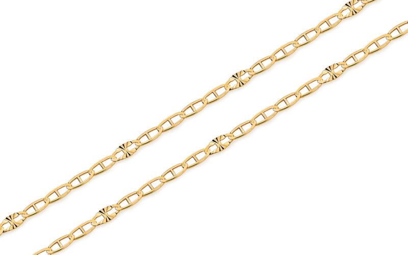 A Marina Gucci aranyláncot 14 karátos ovális láncszemek alkotjá Az arany felülete fényes apró gravírozásokkal minden második láncszemen, amely megsokszorozza az ékszer szépségét.