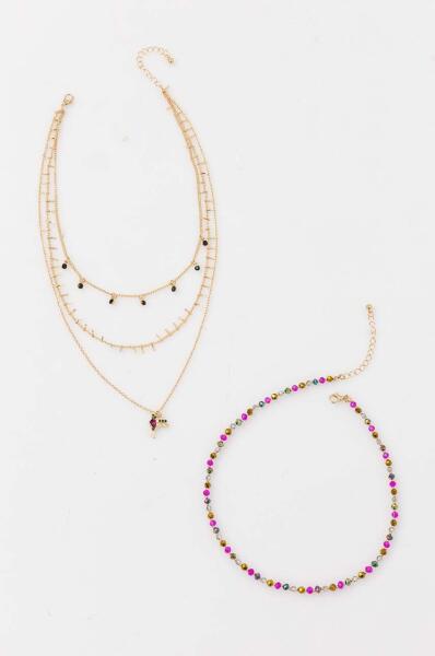 - A készletben lévő darabok száma: 2. - Állítható akasztós záródás. - Dekoratív gyöngyök. - Dekoratív elemek. - Nyaklánc hossza 1: min. 40,5 cm, max. 46 cm. - Nyaklánc hossza 2: min. 36,5 cm, max. 42 cm.