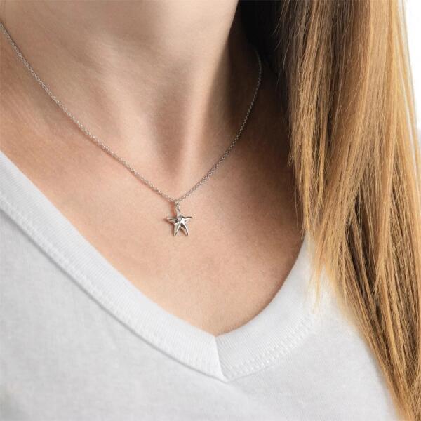 A tengeri csillag mérete: 12,5 x 12,5 mmGyémánt átmérője: 1,1 mmA gyémánt karátsúlya: 0,0065 ctTisztaság: I3Szín: átlátszóLánc szélessége: 1,4 mmNyaklánc hossza: 400 mm (+/- 5%)A nyaklánc súlya: 3,30 gFémjel - Van. A platina felület az egyik legfinomabb ezüst bevonat, amely meghosszabbítja élettartamát és gyönyörű megjelenést kölcsönöz neki. A 925 ezüst nyaklán