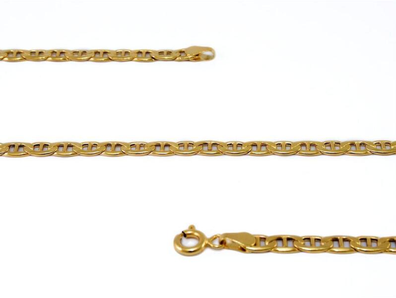 Kedvelt fazonú, mutatós, ez a "pálcás pancer" típusú üreges, de masszív szemekből készült aranylánc.