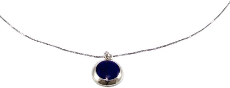 Velencei kocka ezüstláncon különleges, egyik oldalán lapis lazuli kővel, másikon gyöngyházzal díszített medál.