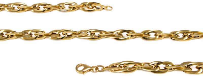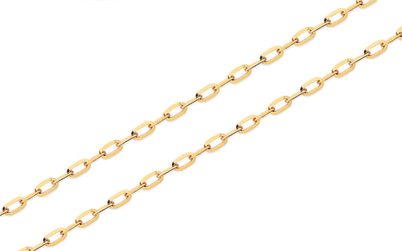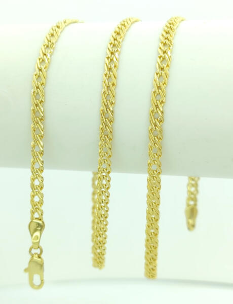 Klasszikus és kedvelt fazonú, üreges kialakítású, mutatós, dupla szemes anker aranylánc.