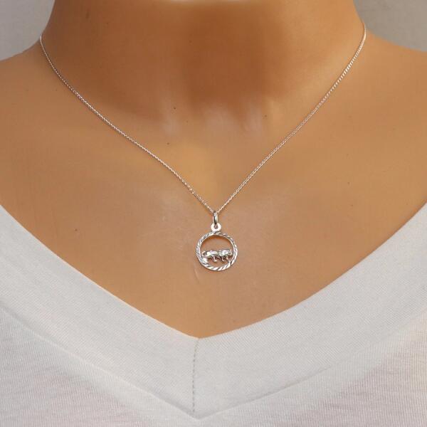 A nyaklánc 925 ezüstből készült, fényes, vékony, ovális szemekből, melyek a két szélső oldalukról lemetszettek. A láncot egy medál díszíti - lapos karika ferde bemarásokkal, középen egy oroszlánnal. Delfinkapoccsal készült. A függő átmérője: 14 mmA függő súlya: 0,7 gA nyaklánc szélessége: 1 mmA nyaklánc hossza: 450 mmA nyaklánc súlya: 1,1 gFémjelzéssel ellát