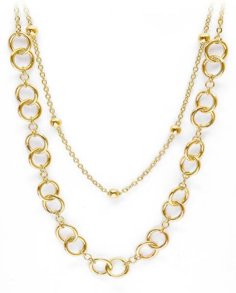 Aranysárga színű lapos dupla fonott nyaklánc Időtálló ékszer, nem feketedik víz hatására sem. Antiallergén ékszer. 14K arany színben kapható. Nyaklánc hossza: 50 cm. Nyaklánc szélessége: 3,5 mm. Az antiallergén ékszerek olyan fémötvözetből készülnek, melyek nem irritálják a bőrt, nem okoznak allergiás reakciókat, ezért fémre érzékeny hölgyek, urak is bátran vi
