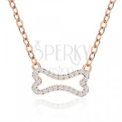 A 925 ezüst nyaklánc rózsaarany színű. A közepén egy átlátszó cirkóniákkal díszített csont található. A csont közepe díszesen kivágott. A láncot lapos ovális szemek alkotják és az egyik oldalán egy levélben végződik. A nyaklánc hossza állítható és delfinkapoccsal zárható. A csont mérete: 13 x 8 mm A lánc szélessége: 1,4 mmA nyaklánc hossza: 440 mmHosszabbít