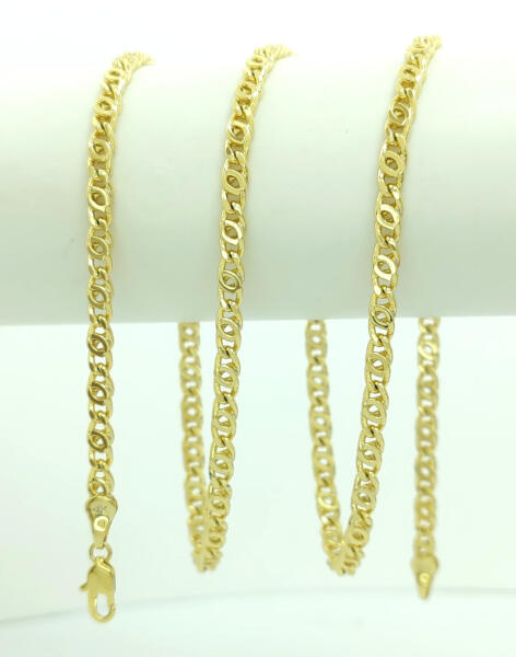 Aranysárga színű fonott jellegűnyaklánc. Időtálló ékszer, nem feketedik víz hatására sem. Antiallergén ékszer. 14K arany színben kapható. Az antiallergén ékszerek olyan fémötvözetből készülnek, melyek nem irritálják a bőrt, nem okoznak allergiás reakciókat, ezért fémre érzékeny hölgyek, urak is bátran viselhetik. Az ékszerek ródium bevonattal vannak ellátva, m
