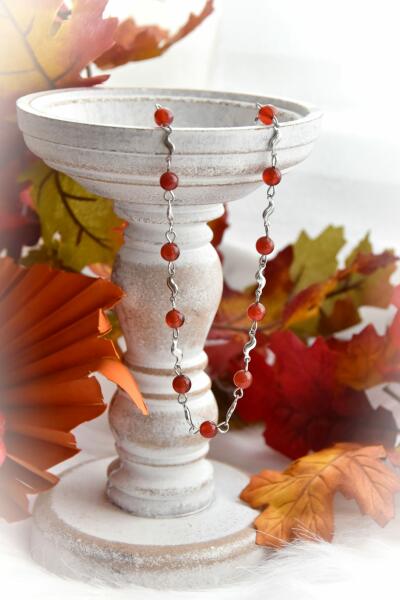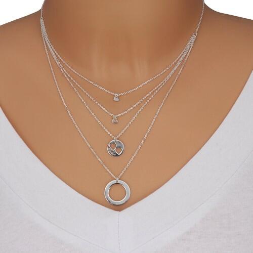 A 925 ezüst nyakláncot egymásra merőlegesen összekapcsolt, ovális szemekból álló lánc alkotja. Az elülső részen a lánc négy különálló láncra van osztva. A leghosszabb láncon egy kör körvonala függ "Grandma" - "Nagymama" felirattal. A következő láncot egy kisebb karika díszíti, amelyet két szimmetrikus szív alakú kivágás és a "mother" - "anya" felirat díszíti. A