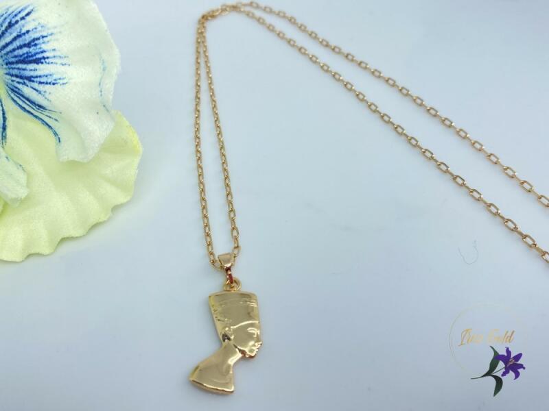 Nofertitit ábrázoló medál aprószemes láncon. Szin: 18K Méret : 55 cm /2 mm Medál: 22x12mm