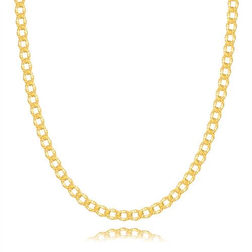 Ovális alakú, hosszúkás láncszemekből álló 9K sárga színű arany lánc, amely enyhén lekerekített és az oldalai apró pont gravírozásokkal díszített. A lánc kerekkapcsos zárszerkezettel rendelkezik . A lánc szélessége: 4 mmA lánc hossza: 500 mm (+/- 5 %)A végzáró szem nagysága: 2,4 mmA lánc súlya: 5,82 gFémjelzéssel ellátott. Az ár egy darabra vonatkozik.