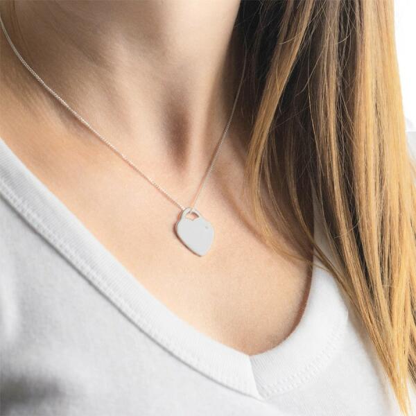 A medál méretei: 20 x 23 mmGyémánt átmérő: 1 mmA gyémánt karátja: 0,005 ctTisztaság: I3Szín: átlátszóLánc szélessége: 1,2 mmNyaklánc hossza: 400 mm (+/- 5 %)Nyaklánc súlya: 5,20 gFémjel - Van. Ezt az elegáns 925 ezüst nyakláncot egy szív lakat, sima felületű medál díszíti. A szív felső részén egy kerek, átlátszó gyémánt található, amely finom fényt és el