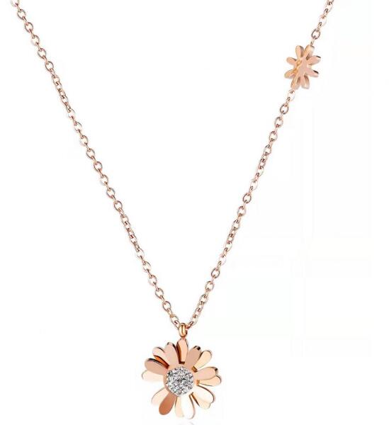 Arany-ezüstszínű, virágot formázó szemekből összefont nyakék jellegű nyaklánc. Időtálló ékszer, amit fürdéskor sem kell levenni, bátran viselhető folyamatosan ("gold filled"). Antiallergén ékszer. 14K arany-ezüst színben kapható. Nyaklánc hossza: 46 cm. Nyaklánc szélessége: 3 mm. Az antiallergén ékszerek olyan fémötvözetből készülnek, melyek nem irritálják a b